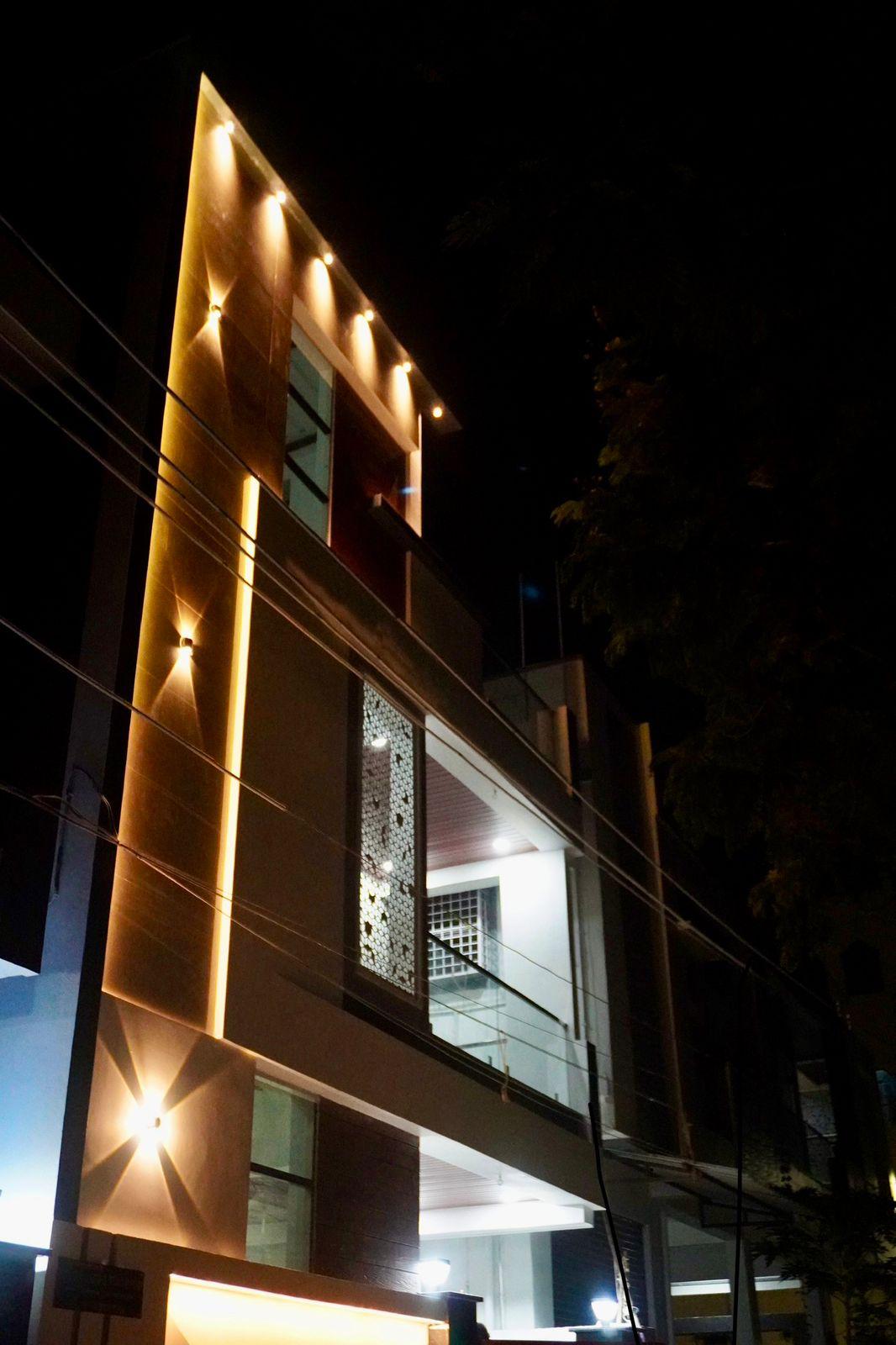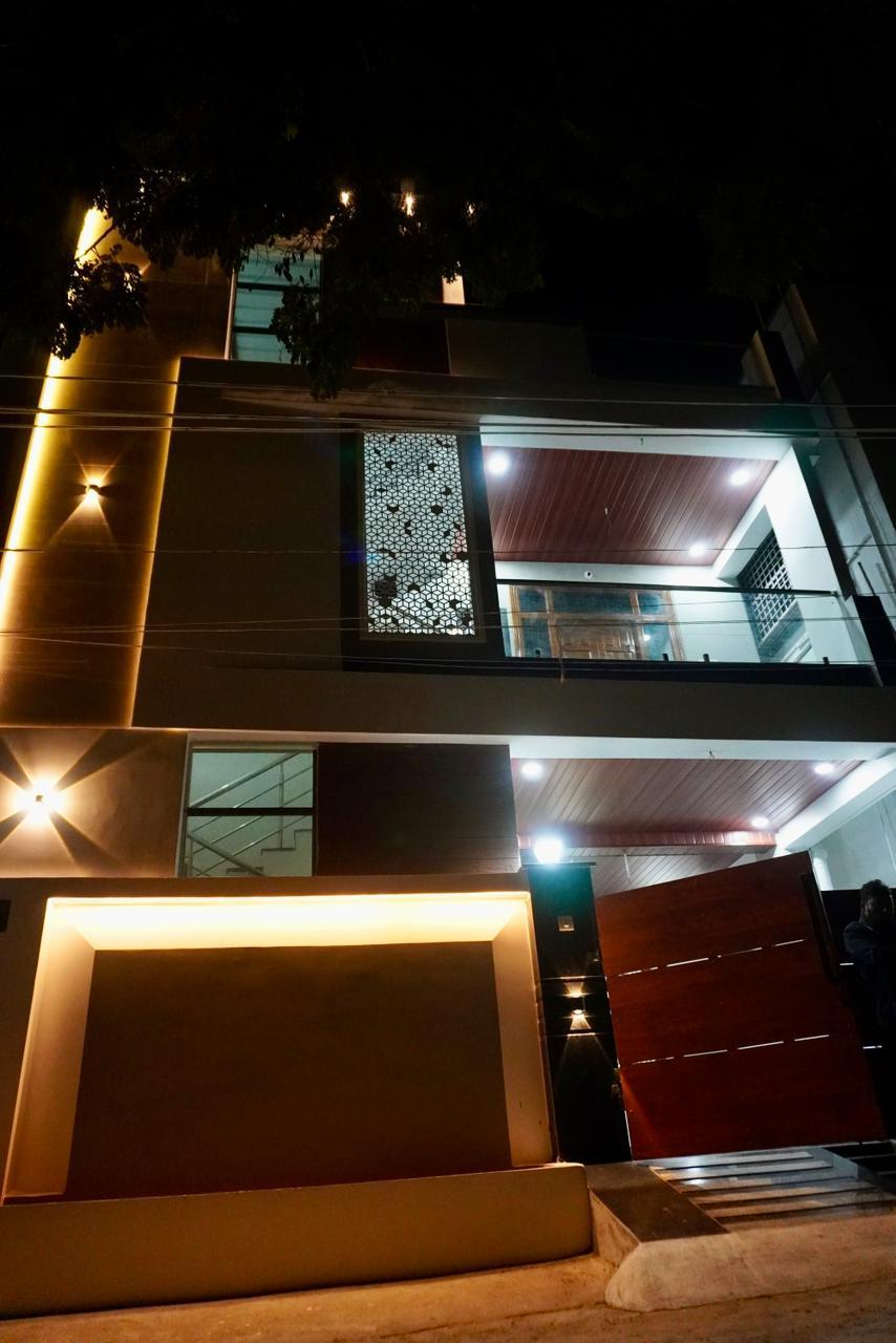G+3 Triplex with ground floor parking and upper three floors triplex.
